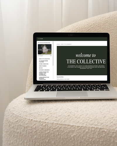 The Collective is a private mentorship community, mentorship, trainings resources that are designed to help you create a business that's both profitable & fulfilling