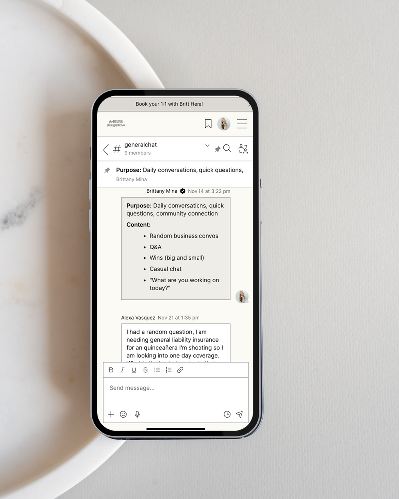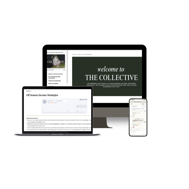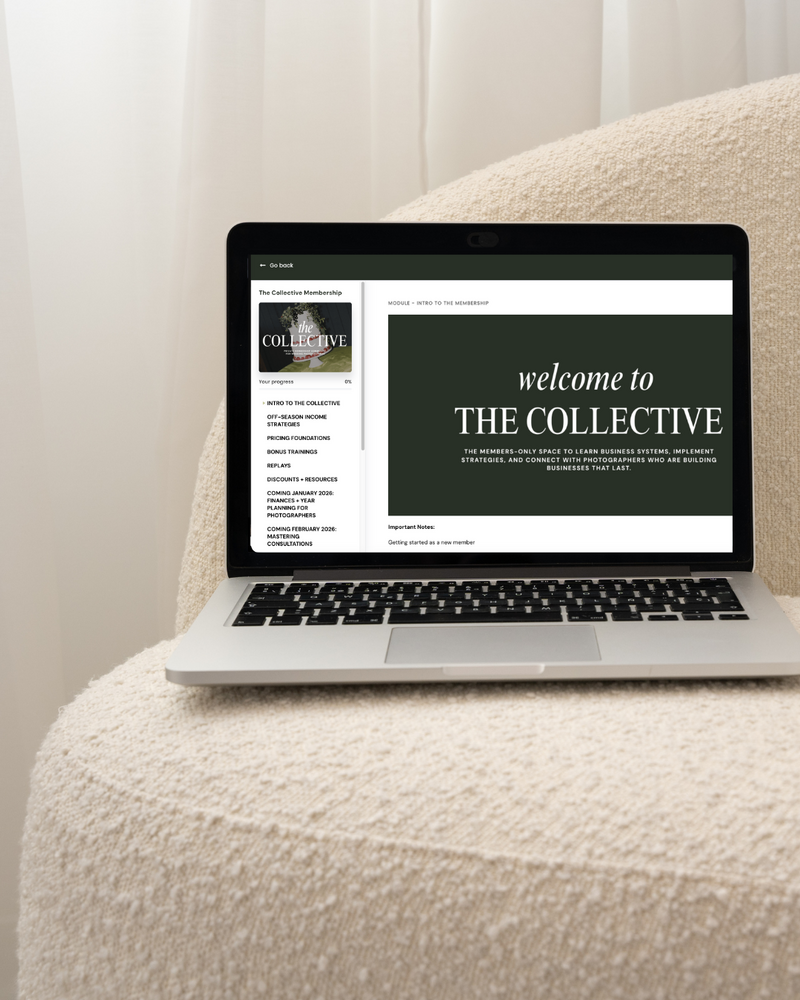 Inside The Collective, you'll get monthly coaching, proven frameworks, templates that work, and a community of photographers who understand exactly what you're going through—
